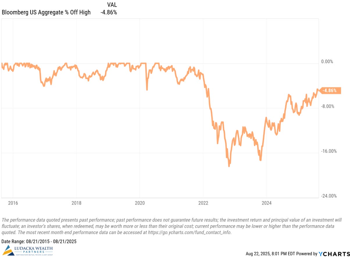 Interest rates spiked between 2021 and 2023, driving bond prices down almost 18%.