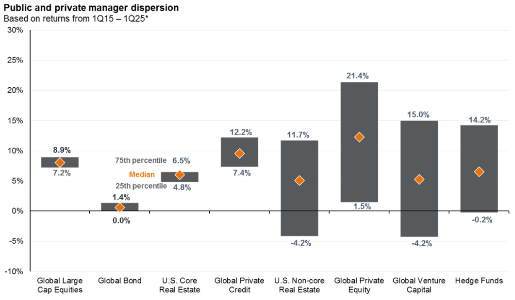 So, manager selection matters, more so than other asset classes.