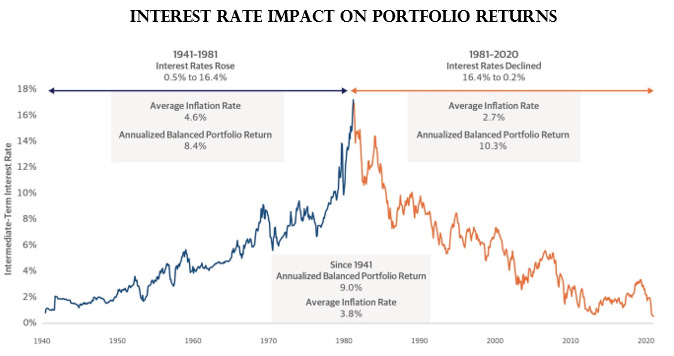 Northwestern Mutual shows that the 40-year period before 1981, a 60/40 portfolio earned 8.4% annualized, while the following 40-year period produced an impressive 10.3% annualized return (see chart below):