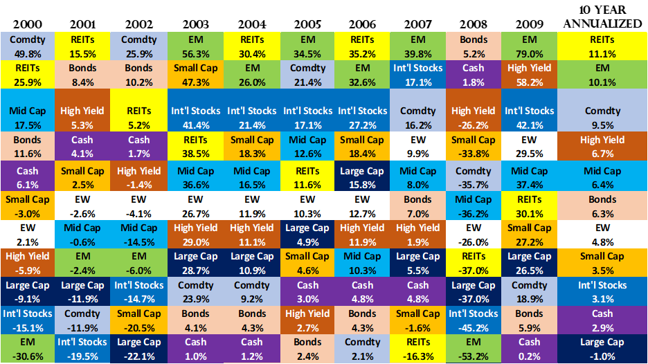 If you squint your eyes, you can see them at the bottom of most years. In fact, these “juggernauts” delivered a negative 1% annualized return over this 10-year period.