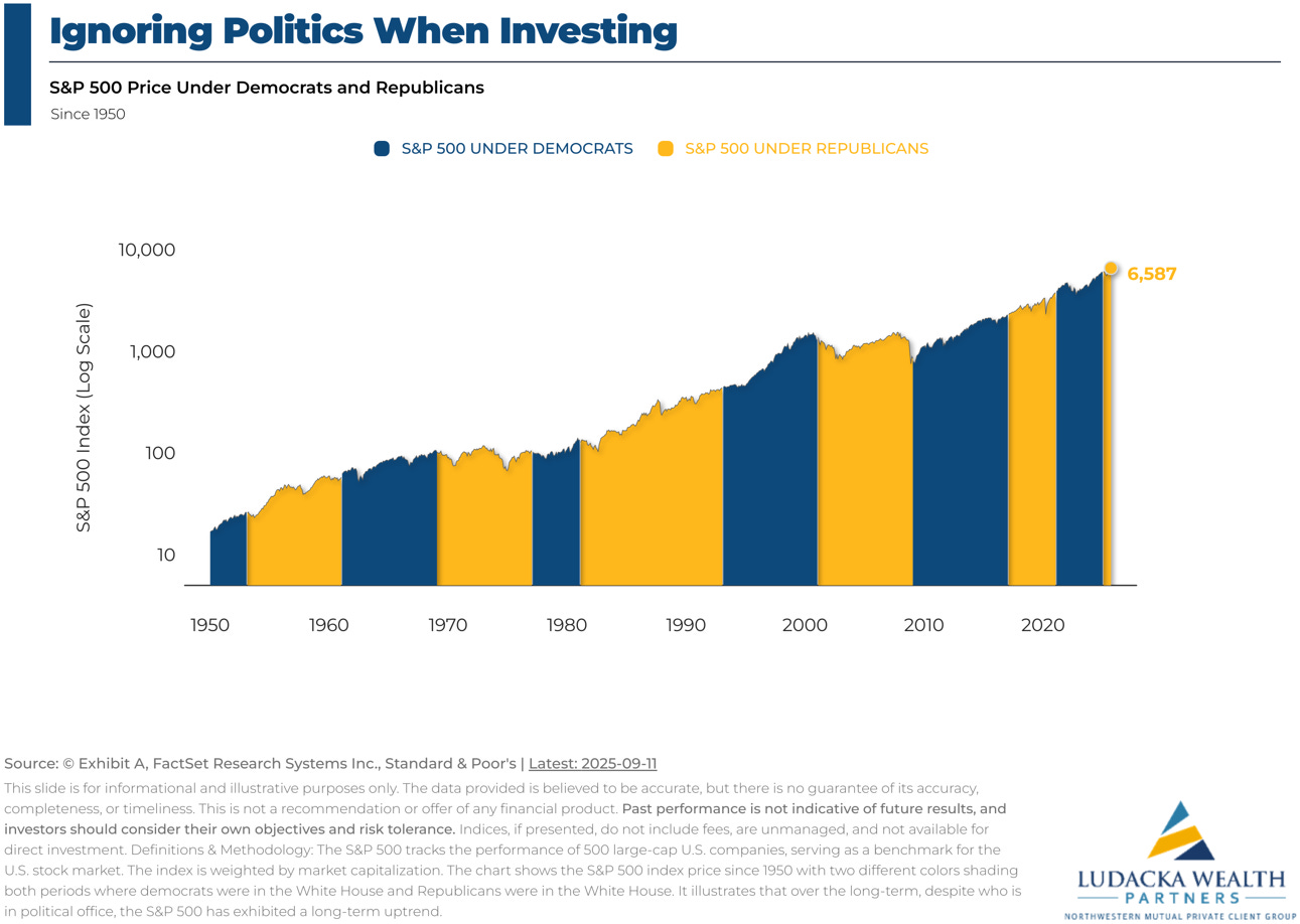 The stock market has continued to move higher regardless of party affiliation.